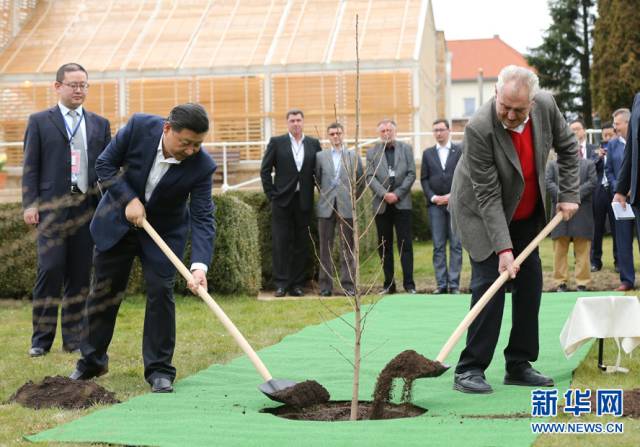 而今,踏上捷克的土地,两位元首再一次培土、浇水,习主席意味深长地说,前人栽树、后人乘凉,中捷共植友谊树,寓意友好绵长久远。