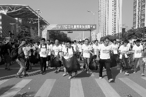 兰州300环保卫士马拉松赛道沿途捡拾垃圾(图)