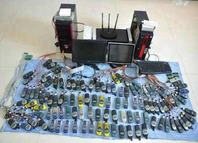 在运城市盐湖区警方的大力支持下,侦察员调取了10多个银行网点、商场的视频监控录像和银行交易流水记录。经过大量的梳理、甄别工作,最终锁定了一男一女两名犯罪嫌疑人,2014年12月12日14时许,民警在山西运城市体育馆广场将两名犯罪嫌疑人抓获,并从其出租屋内缴获作案用手机短信群发器2套、手机百余部,涉案银行卡60张、身份证12张以及诈骗用手机17部、电话卡100余张。经审讯,两名犯罪嫌疑人对其犯罪事实供认不讳。