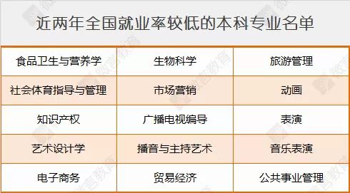 教育部公布近两年就业率较低的本科专业名单