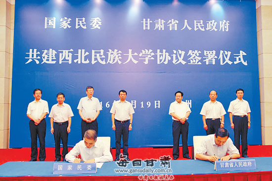 国家民委与甘肃省政府共建西北民族大学协议签署仪式7月19日在兰州举行。