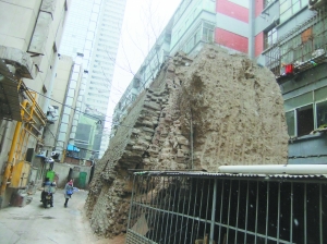 中国甘肃网2月1日讯 据兰州晨报报道 (记者 张学江 实习生 丁璐) 近日,胡先生向本报记者报料,称南关什字润成花园小区内一段兰州老城墙残破不堪,希望通过媒体呼吁相关部门给予保护。记者采访获悉,这段城墙为明清时期兰州城墙遗存,也是兰州老城区留存的唯一一段老城墙。