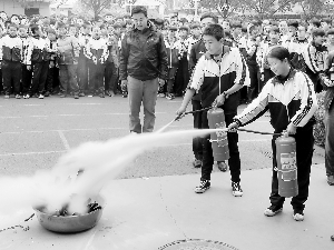 11月11日下午,兰州市第四十六中学组织开展了以“强化消防安全意识,提高消防避险能力”为主题的消防安全教育疏散演练活动,培养学生的应急反应能力和自救互救能力,同时让师生了解了灭火的基本常识。本报记者 魏娟摄