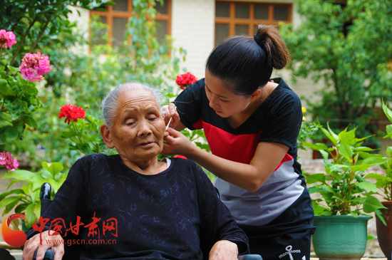 甘南州舟曲县大力挖掘和选树典型,倡导孝老爱亲、善行义举,培育和践行社会主义核心价值观,弘扬中华民族传统美德。图为舟曲县峰迭乡瓜咱村村民杨岁林女儿给患病的奶奶做头部按摩。通讯员 杨寿永 摄