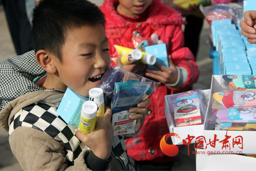 爱心物资发放结束后,孩子们像过节一样兴奋,开心和温暖挂在脸上。一些爱心企业的工作人员还向12名家庭困难的学生每人发放了600元的助学金。“这些孩子中,有一些孩子由于家庭贫困,一些爱心企业对这些孩子有进行长期帮扶的计划,这项计划已经开展了两年多了。”兰州兰海集团总经理陈刚说道。