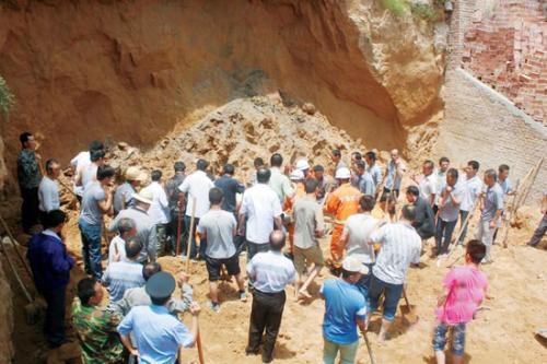 天水:村民建房 5米高路基塌方掩埋两人(图)