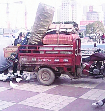 原标题: “棉大衣”驾驶三轮车在东方红广场倒垃圾执法人员蹲守将其抓