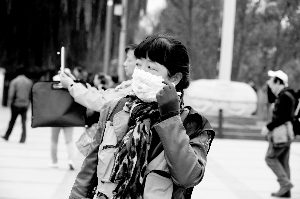 10月10日早晨,兰州市民身着厚厚的衣服出行。本报首席记者裴强摄