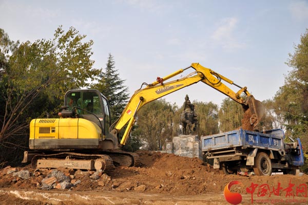 1月12日,在马跑泉公园提升改造项目建设工地,一辆挖掘机正在进行土方作业。