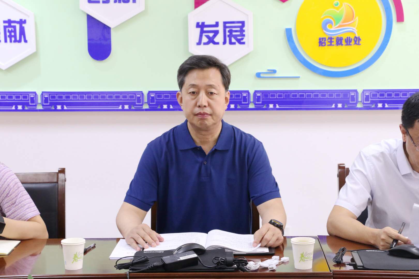 马军党强调,招生录取工作是学校招生工作中的一项重要工作,政策性很强,社会关注度高,责任重大,招生录取工作人员要明确岗位职责和工作纪律,遵守招生政策和纪律要求,把好学校人才培养的入口关,要提高政治站位,主动接受纪委、广大师生、学生及家长的监督,切实体现公平、公正、公开的“阳光招生”政策;要做好条件保障,各部门要明确责任分工,密切配合,及时沟通,协调解决好招生录取过程中遇到的问题和困难,保障招生录取工作安全、有序、顺利进行;要专门安排人手做好录取期间的宣传解释工作,对来电咨询的考生和家长要文明、耐心、细致地开展解惑释疑,确保考生和家长满意。