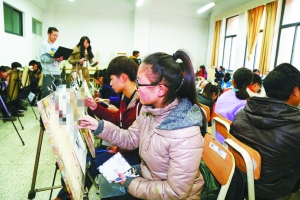 中国甘肃网12月22日讯 据兰州晨报报道(首席记者 魏娟)12月21日,2015年甘肃省普通高校招生美术与设计学类专业统一考试在西北师范大学开考。记者获悉,2015年我省共有艺术类考生29419人,比上年增加633人,其中,美术与设计学类报考人数15607人,比上年增加998人,也是甘肃省美术专业实施省级统考以来人数最多的一次。此外,首次纳入艺术类统考的音乐表演(空中乘务)专业将有2000余人报考。