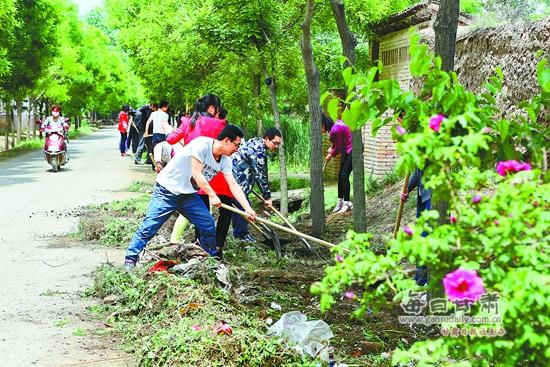 庆阳市西峰区什社乡干部上街清除杂草垃圾。近日,该市机关干部纷纷加入环境综合整治行动,促进城乡环境持续改善。记者 张子恒