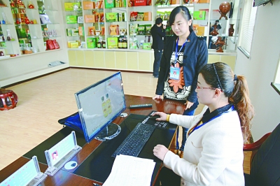 徽县柳林镇电子商务中心工作人员正在进行网络营销。徽县以农产品销售为突破口和切入点,全面推进电子商务发展。截至目前,全县电子商务实现销售总额3230.6万元,其中线上交易953.6万元。(通讯员 尹辉东摄)