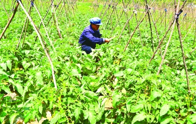 今年以来,成县认真践行群众路线,各级干部深入乡村帮助农民发展以蔬菜为主的富民产业,全县蔬菜种植面积达3万亩。图为菜农正在田间作务蔬菜。 通讯员 武君香 摄