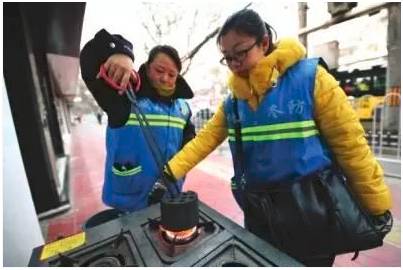 社区工作人员为住户引燃无烟引火煤