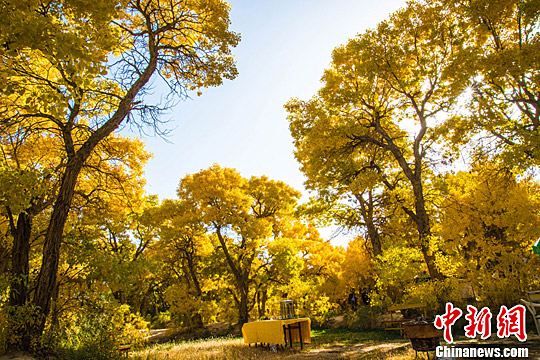 金秋时节,位于甘肃省敦煌市城西120公里处的敦煌西湖国家级自然保区内胡杨林迎来一年中最美的时节,金色胡杨在阳光的照射下,显得更加多彩迷人,如诗如画,美不胜收,引无数游人流连忘返。