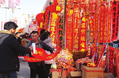 春节临近,春联市场十分红火,营造了浓浓的节日氛围。在临夏市义乌国际商业广场“临夏·龙图年货展销会”民俗文化特色展区,品种繁多、精美别致的春联和各式各样的迎春饰品,受到广大市民青睐。 记者刘红红王伟如摄