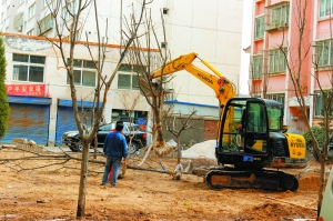 中国甘肃网3月21日讯 据兰州晨报报道 (记者 谭安丽 马成斌 ) 阳春三月,花草树木尽皆发芽。然而,3月20日,在兰州市西固区生产街宝龙小区内,几十棵生长了十余年的树木却被人挖走,此举遭致小区业主的强烈不满,纷纷怀疑物业将树挖走是为了卖钱,物业部门则称,小区内目前正在实行改造,挖走树木是为了拓宽小区道路,避免小区车辆拥挤。