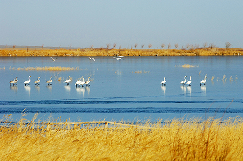初冬的甘肃银滩湿地公园也是一幅美丽的画卷,芦苇一片金黄,雪白的芦花随风摇曳,在空中漫天飞舞,大批水鸟在此嬉戏觅食。据统计,每年约有上万只候鸟光临兰州,黄河风情线以及黄河银滩湿地已成为候鸟栖息的“天堂”,其中不乏大天鹅、灰鹤、大白鹭、中华秋沙鸭等珍稀鸟类。