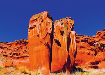 据介绍,此片地质地貌相当奇异,属典型的丹霞地貌,但与已开发的丹霞地貌存在巨大差异,其特点是“色”艳、“形”奇、“貌”怪、“态”神,令人叹为观止。该处丹霞地貌核心部分由3条沿祁连山自上而下的峡谷组成,占地面积约10平方公里,以瑰丽的红色砂砾岩为主,并伴有灰白、酪黄、赭石、深红等多种色彩,经千百年风雨沧桑,汲天地日月灵气,其形态千变万化、多窟多洞、如柱如林、诡异神奇,有的高逾百丈,气势磅礴;有的独体而立,玲珑精巧;有的居高临下,遥相呼应;有的仰天长啸,峥嵘尽露。各种造型、万千组合,或左依右靠,或腾空而起,或直指云天,形似雄狮、银蛇、大鹏、金蟾等,不同视角均可见不同神形,大自然的鬼斧神工在这里发挥得淋漓尽致。见过该地奇异地貌者,有人称此为“鬼脸丹霞”。