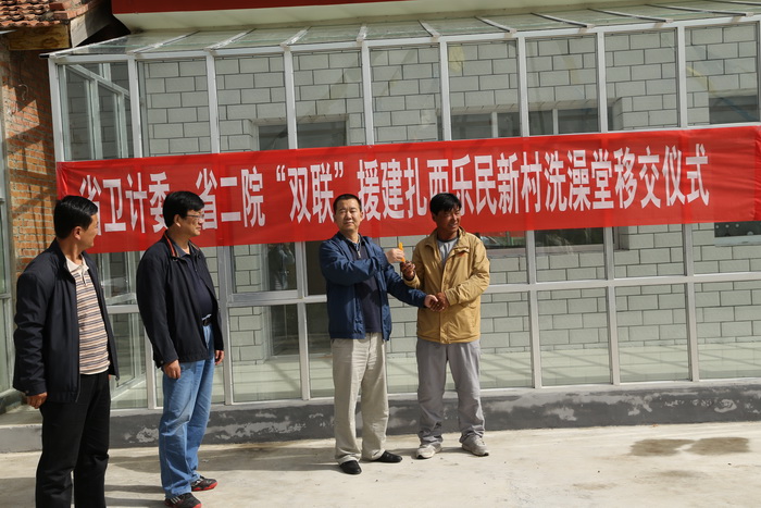 8月14日,由省卫生计生委、省二院支持的“双联”项目-扎西乐民新村公共浴室竣工并交付使用。省卫生计生委应急办主任孙亚军主持公共浴室交接仪式。省卫生计生委疾控处处长王晓娟、省二院副院长张灏等领导参加。
