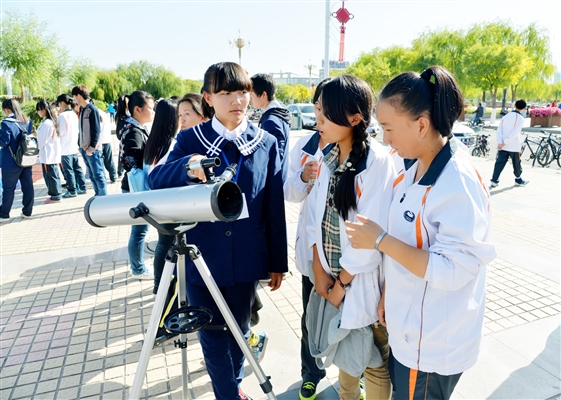中国甘肃网10 月10 日讯 据嘉峪关日报报道10月1日,嘉峪关市酒钢三中天文台在雄关广场通过展板讲解、邀请市民体验天文望远镜等方式,普及天文知识。图为一名学生为大家讲解天文望远镜有关知识。