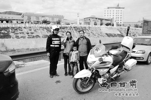 盐场堡高速交警帮来兰旅游的陕西夫妇找回丢失的孩子。本报记者李升通讯员韩毅摄